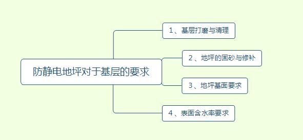 对于防静电环氧自流平地坪来说,它要求地面强度在C20以上,使用2m靠尺检查时要求偏差小于2mm,而且表面不能有任何油污等污物。